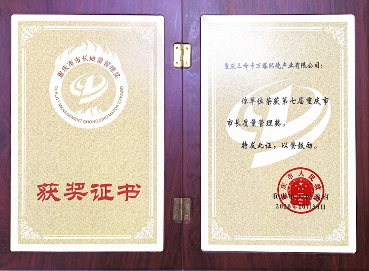 三峰卡萬塔榮獲第七屆重慶市市長質(zhì)量管理獎(jiǎng)